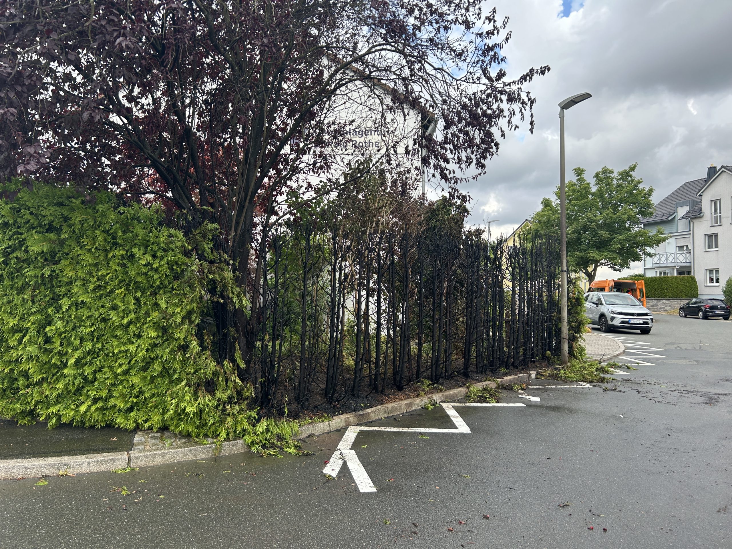 Durch den Städtischen Bauhof wurden wir in die Weidenstraße alarmiert. Dort brannte eine Hecke an einem Gebäude. Ursache war das Aufbringen von Straßenmarkierungen in Verbindung mit dem Einsatz eines Bunsenbrenners.