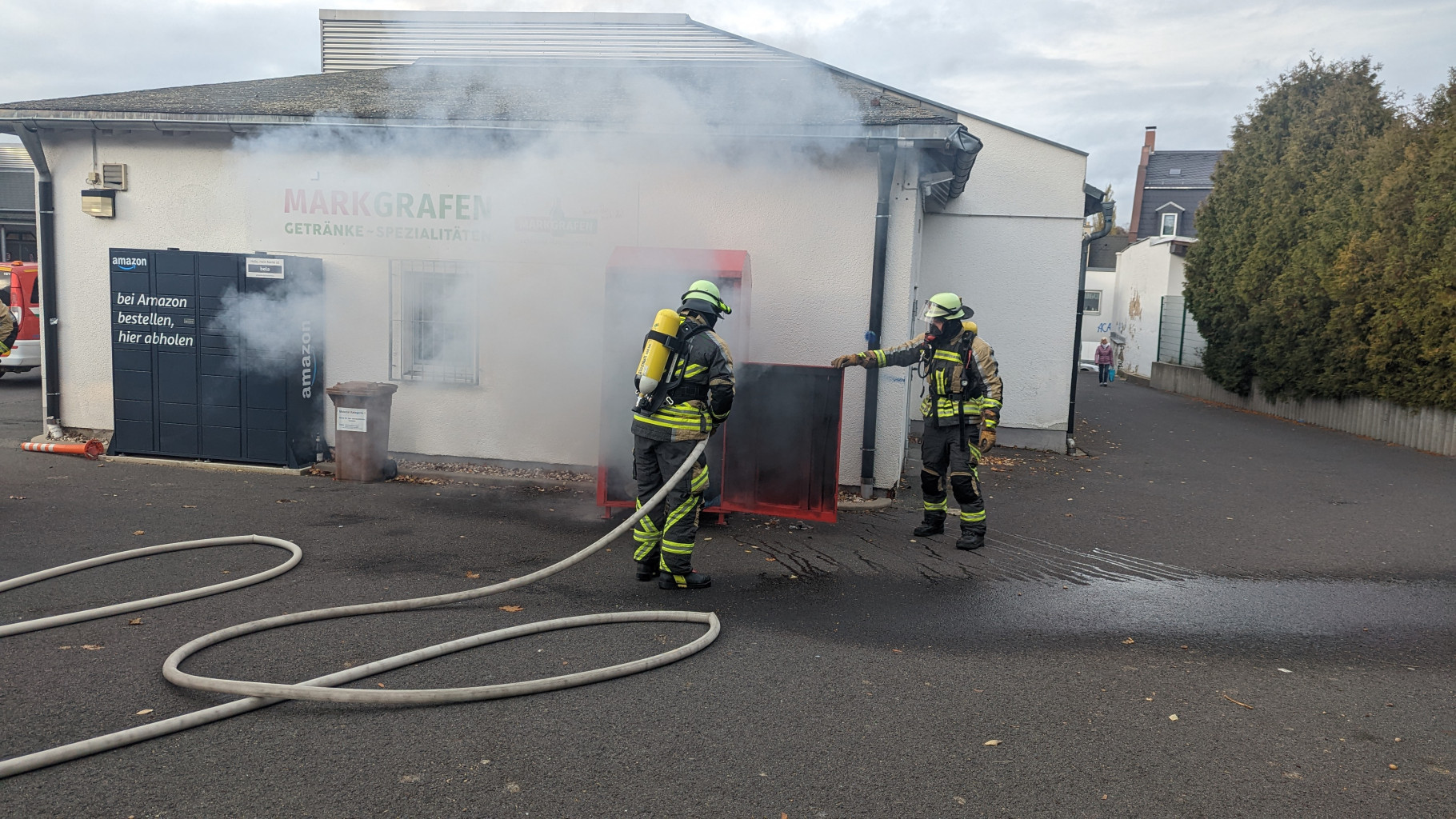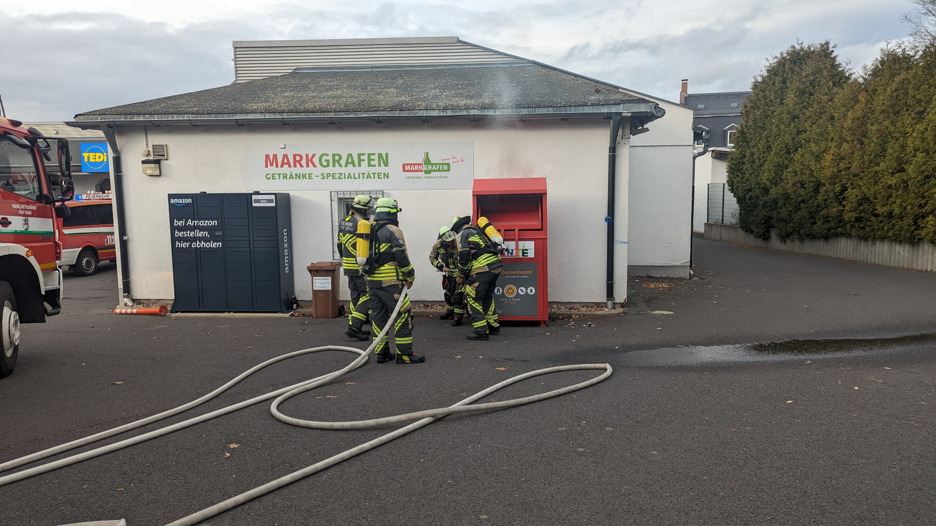 Brand eines Altkleidercontainers mittels C-Rohr gelöscht.
