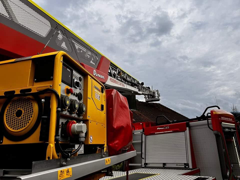 Im weiteren Einsatzverlauf wurde zusätzlich noch das Notdach zur Einsatzstelle gebracht, welches aber nicht mehr zum Einsatz kam.