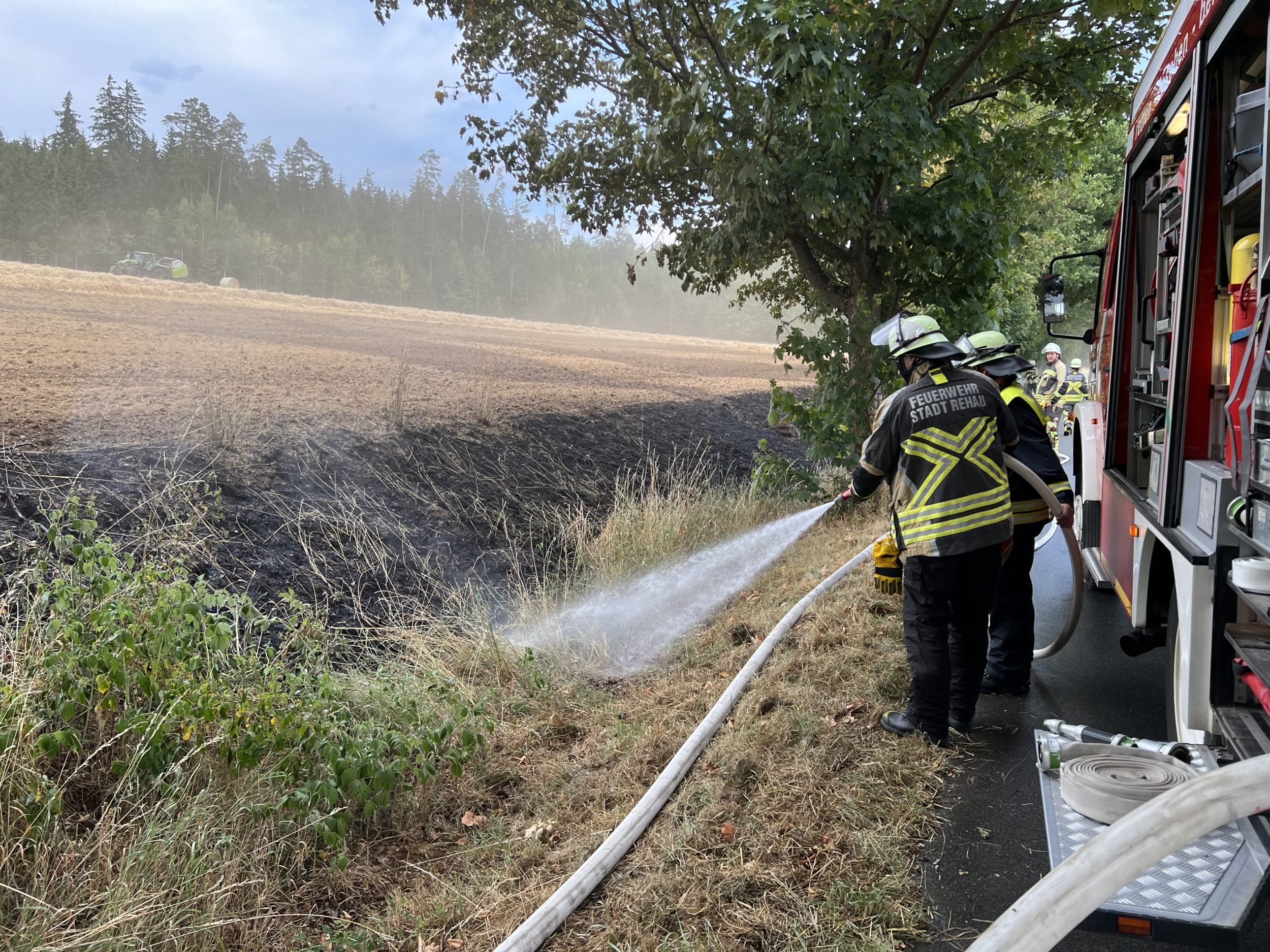 In Brand geratenes Stroh auf Wiese ca. 1600 qm.