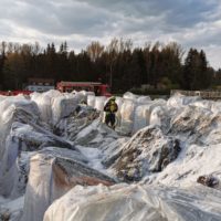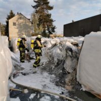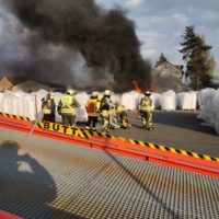 Die dichte Rauchwolke zeigte den anfahrenden Kräften bereits von weitem den Weg zur Einsatzstelle. Nach erster Erkundung durch den Einsatzleiter der Feuerwehr Rehau stelle sich ein Brand im Außenbereich der dortigen Firma dar. Mehrere „BigPacks“ gefüllt mit Kunststoffgranulat standen in Flammen.