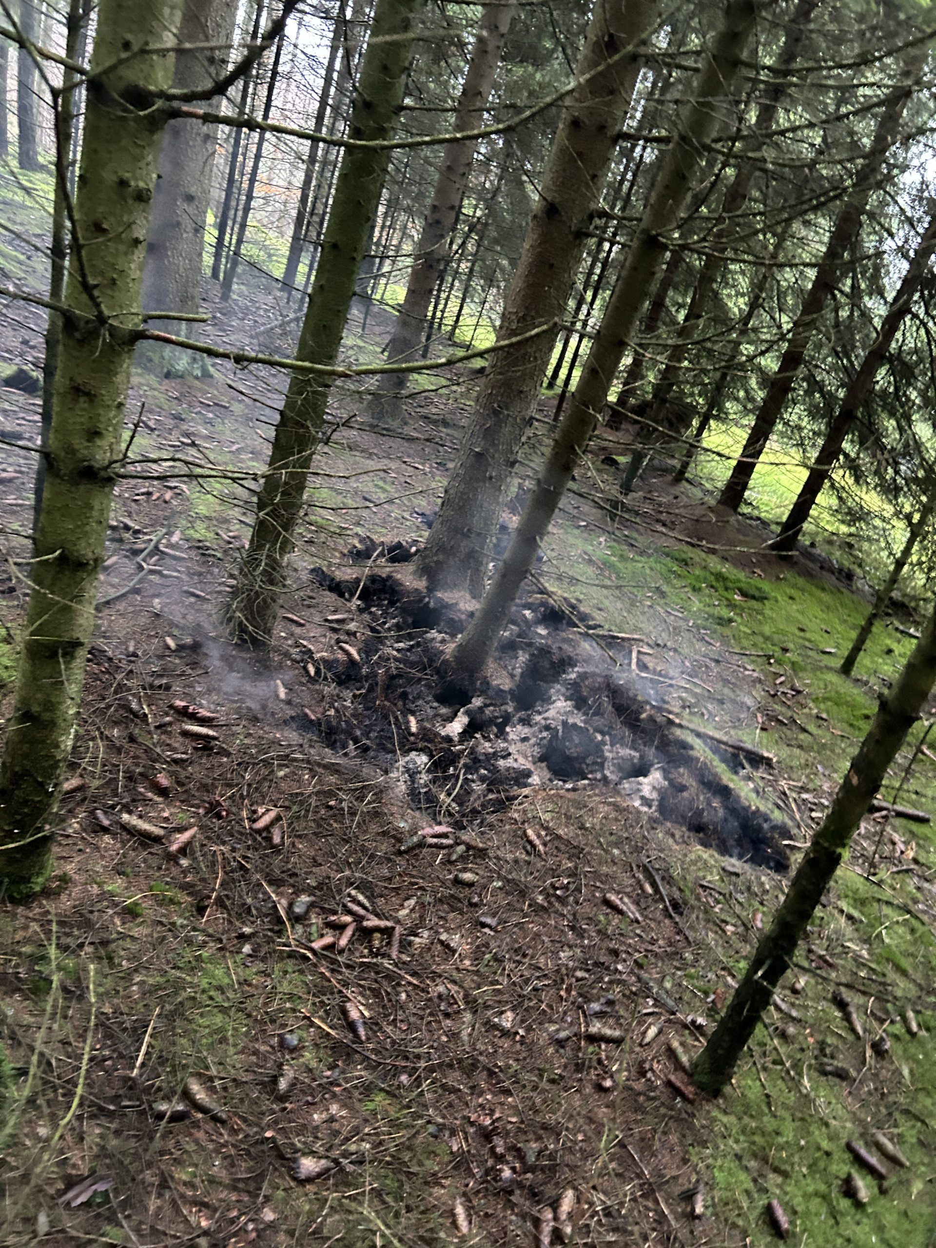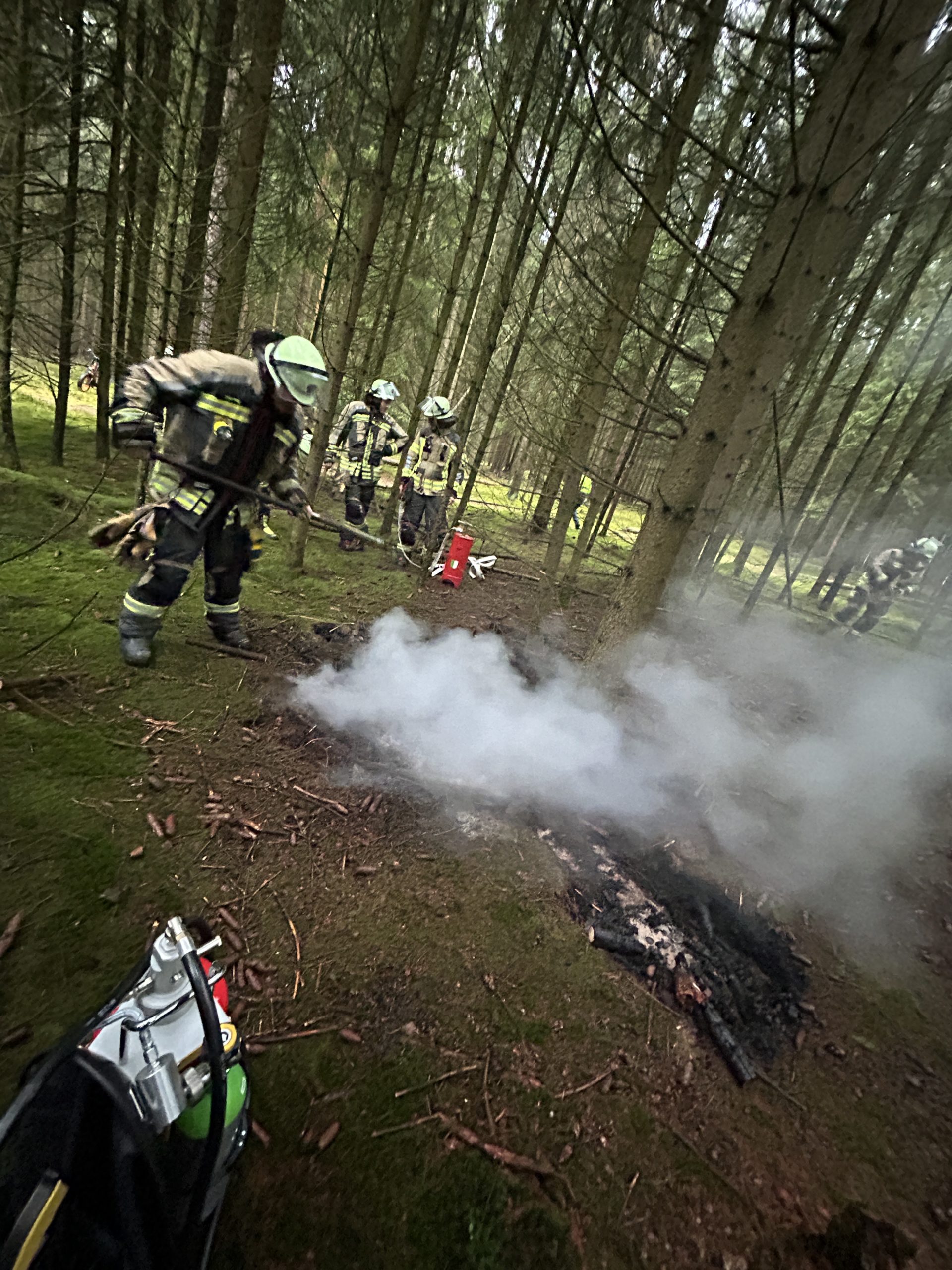 Aus ungeklärten Gründen brannte es in einem Waldstück neben der A93. Wir löschten die ca. 4×4 Meter große Brandstelle mit Wasser ab, dabei wurden auch aufgrund des Geländes Waldbrandrucksäcke eingesetzt.