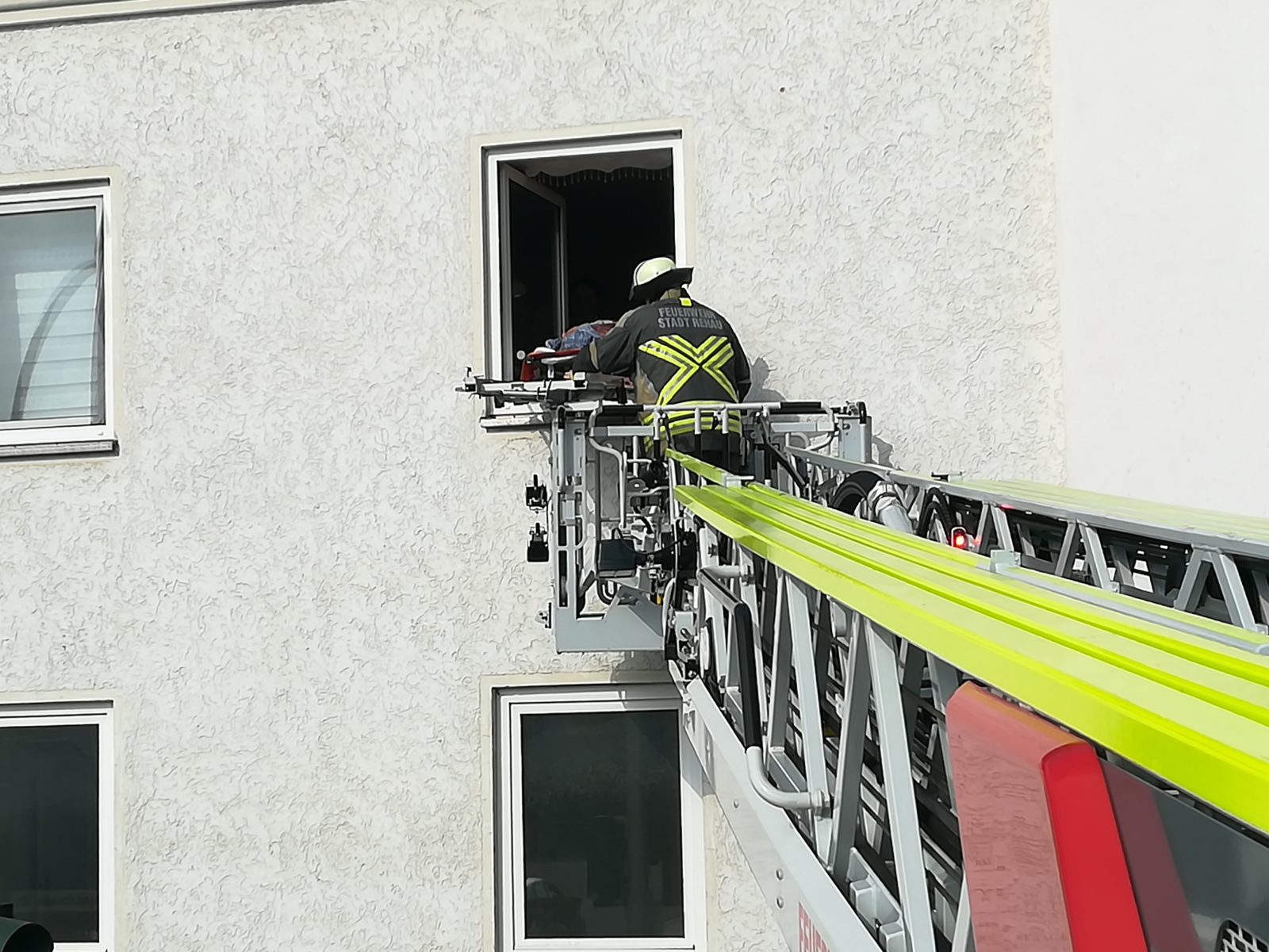 Notfallpatient aus 1. OG über die Drehleiter gerettet