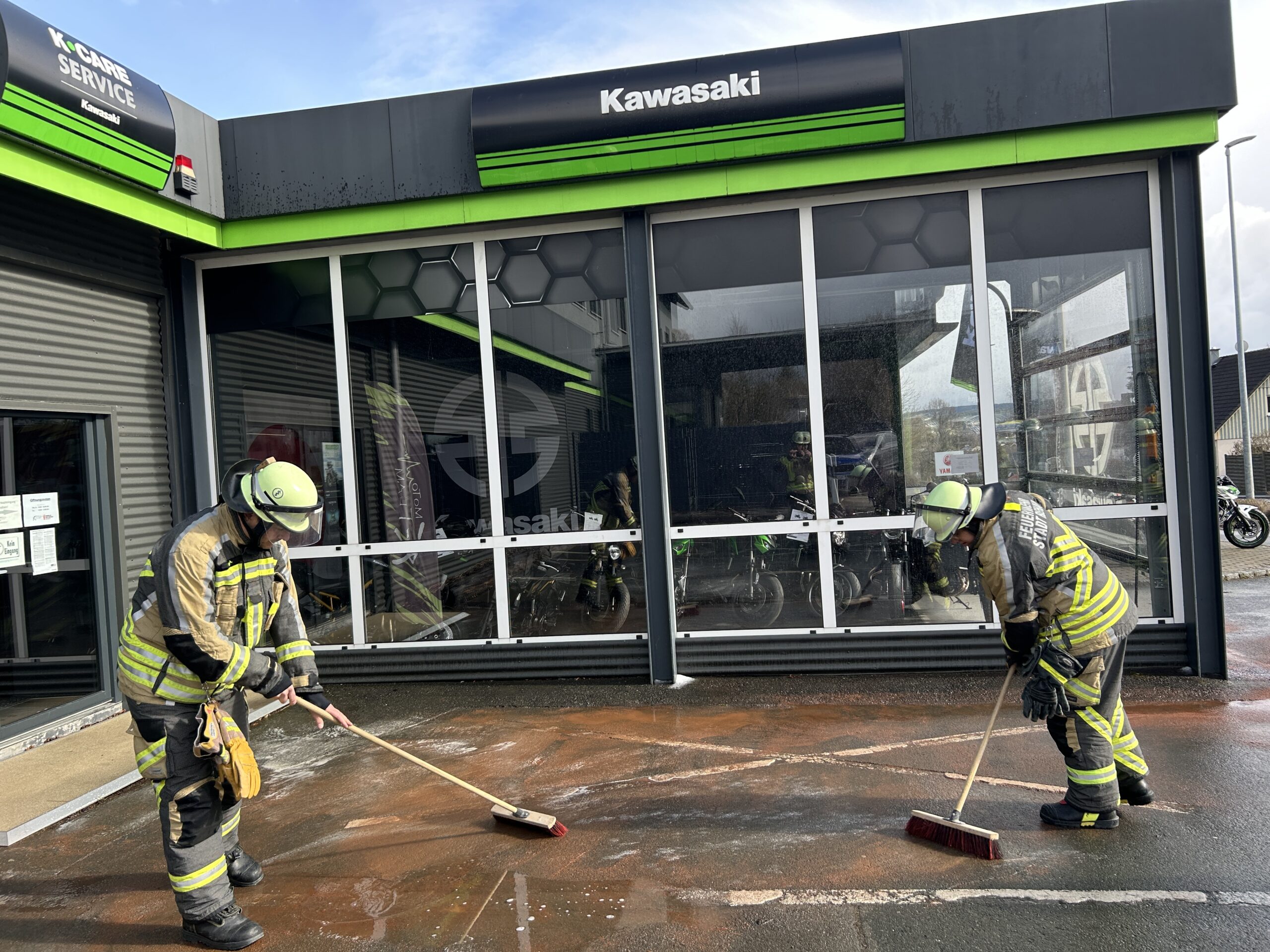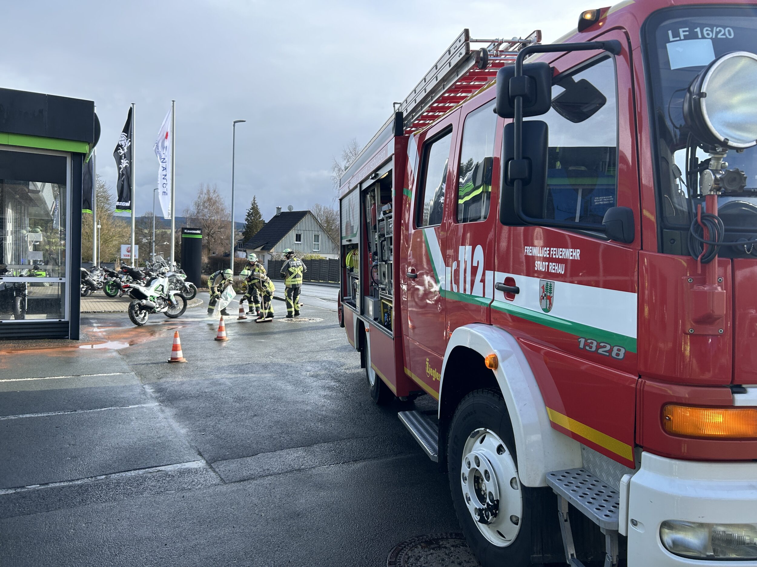 Aus einem PKW liefen Betriebsmittel aus und verbreiteten sich auf einem Betriebsgelände bis in die Kanalisation.
