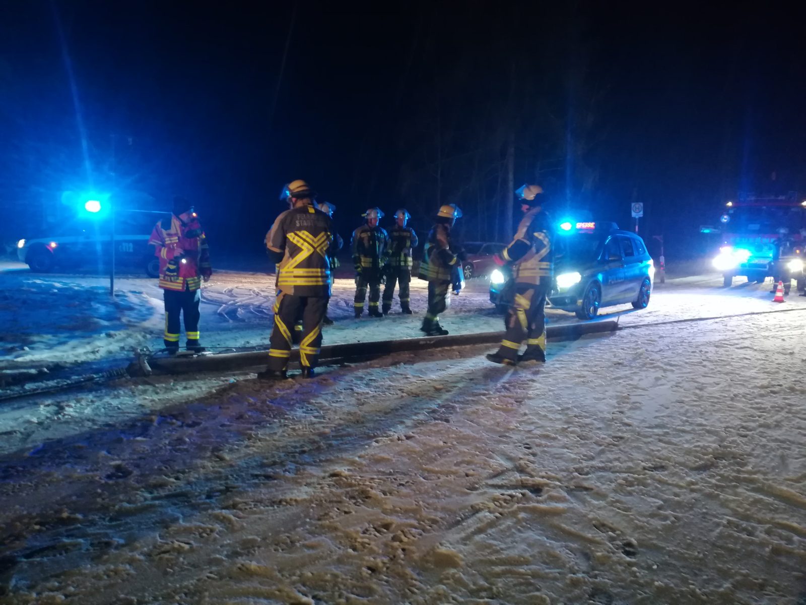 Ein abgebrochener Telefonmast lag, auf höhe Waldhaus, mitsamt Telefonleitungen quer über die Fahrbahn.