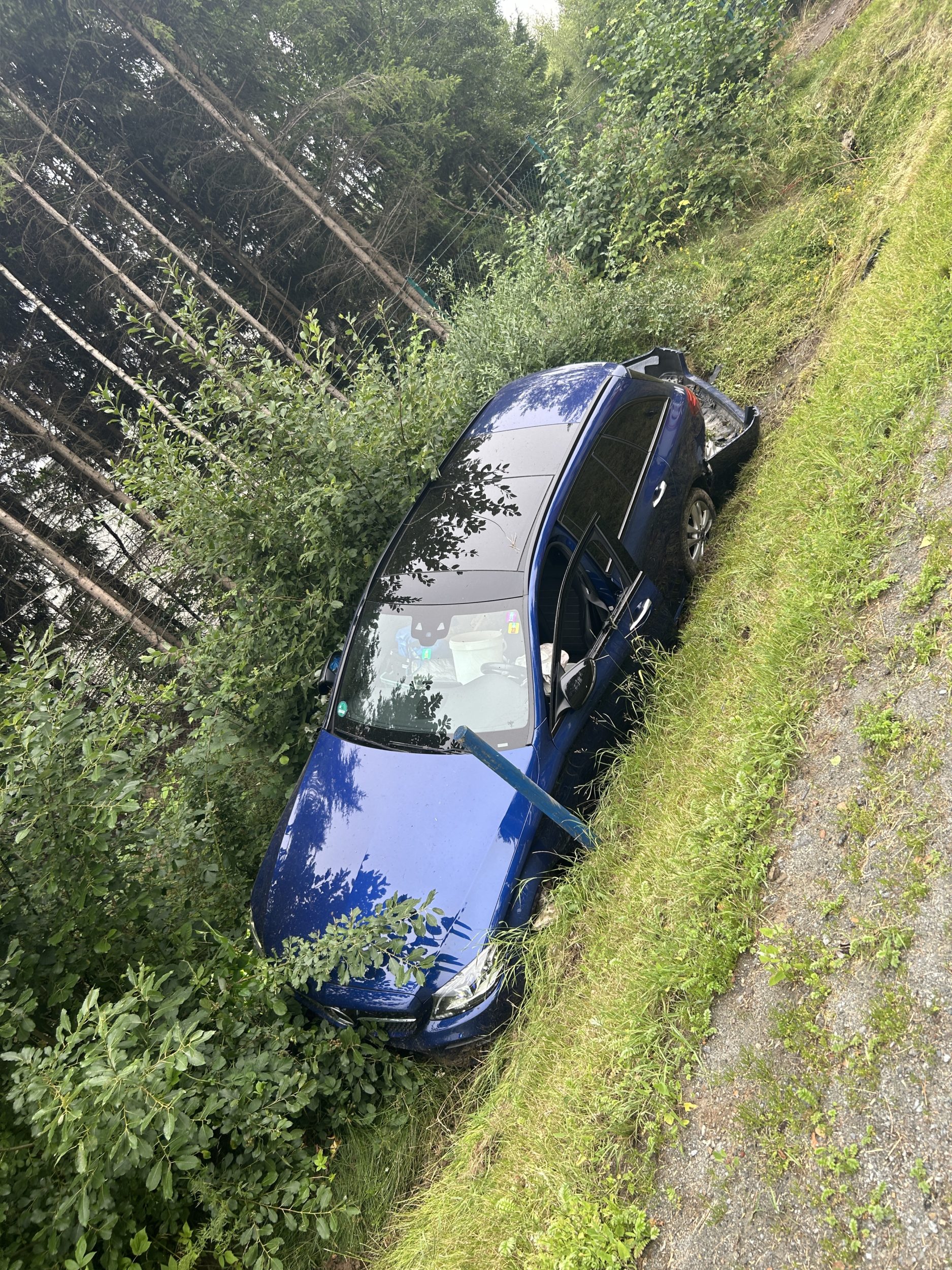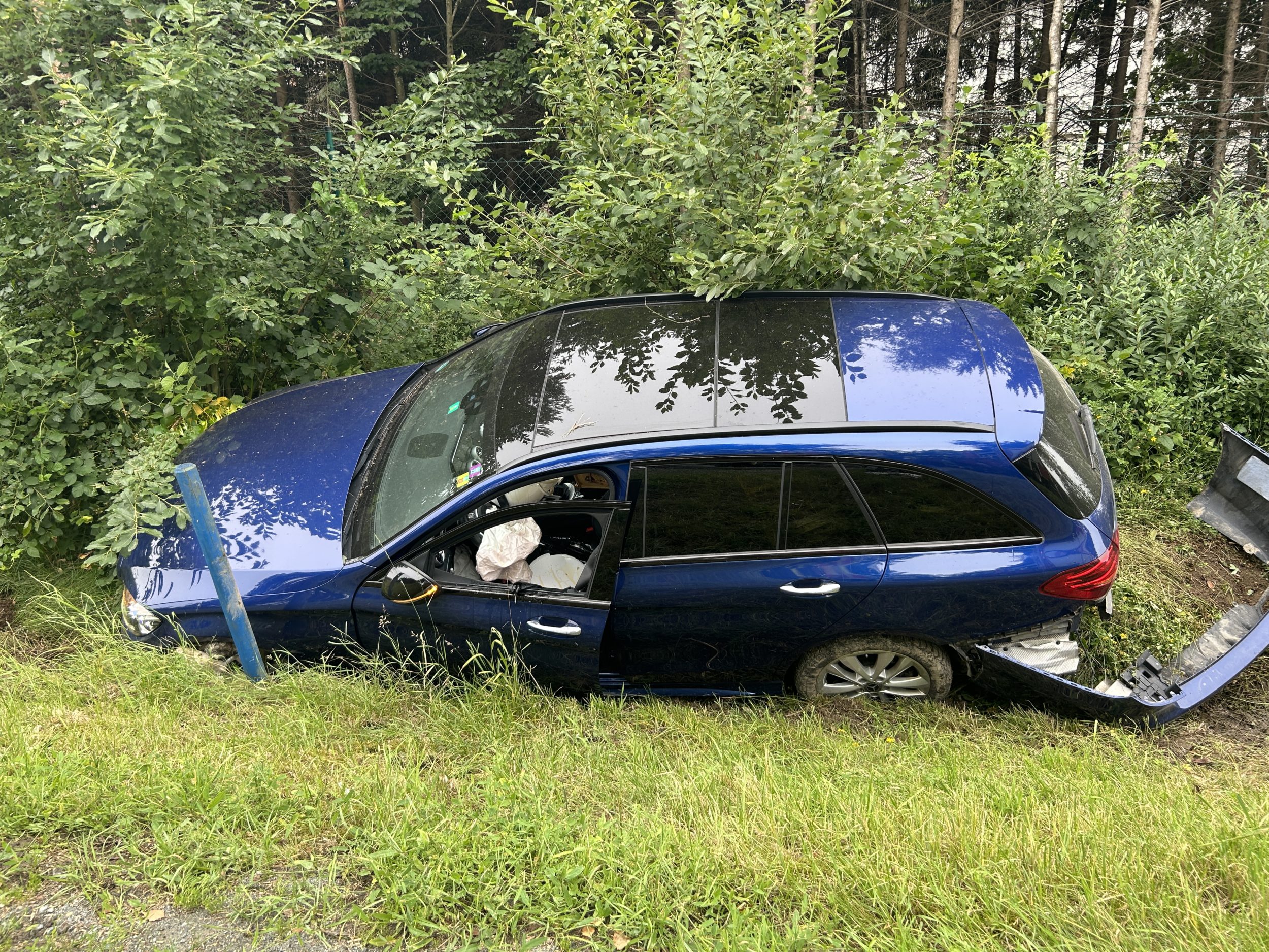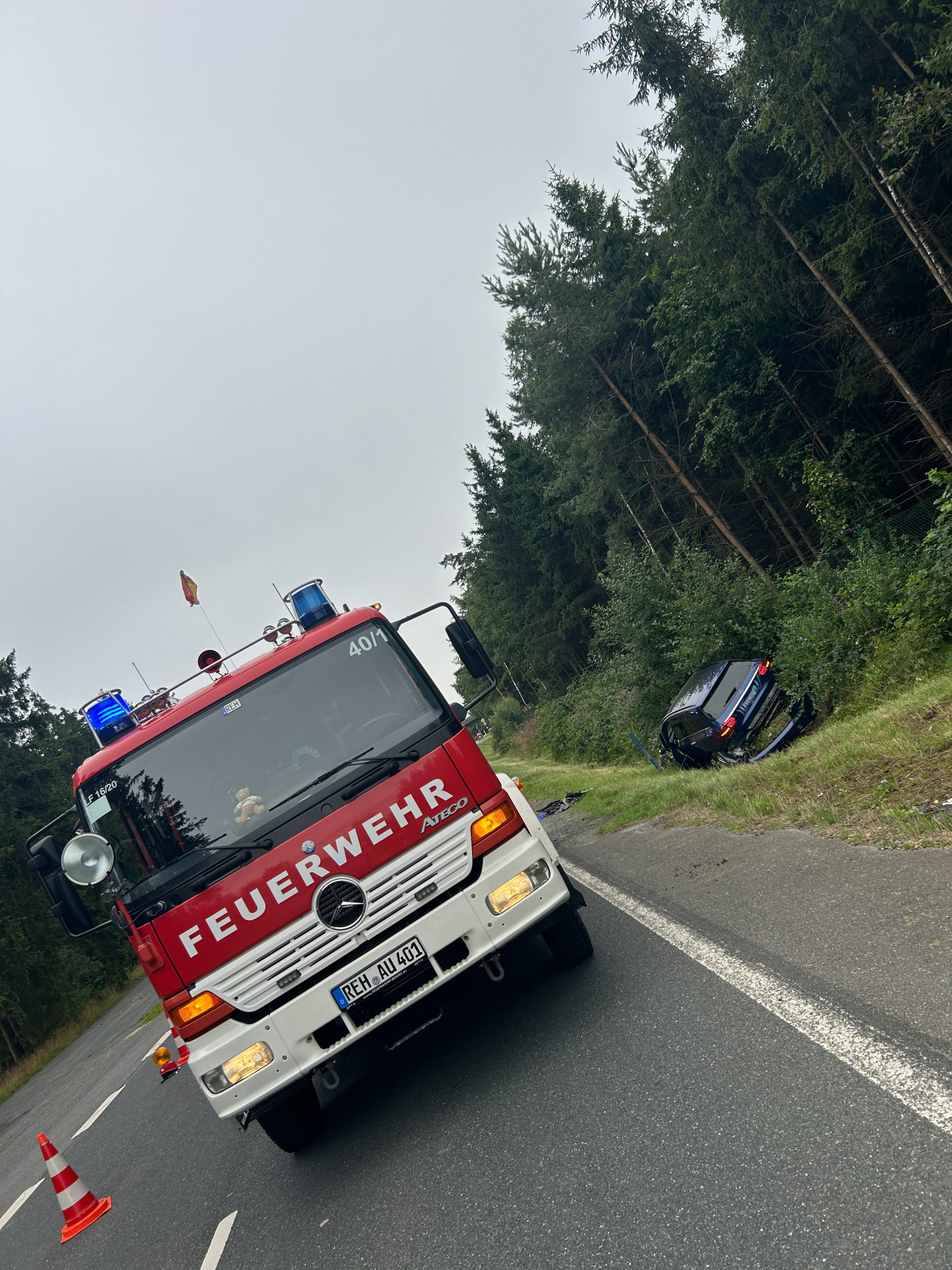 Ein PKW kam von der Fahrbahn ab und endete im Straßengraben. Der Fahrer kam vorsorglich in ein Krankenhaus, die Feuerwehr übernahm die Verkehrsabsicherung und den Brandschutz.