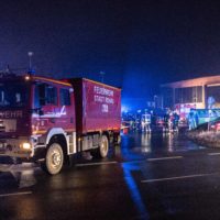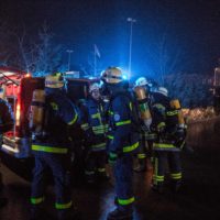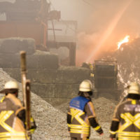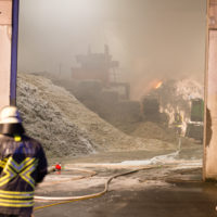 Nach erster Lageerkundung und der Tatsache, dass beide Führungskräfte den Großbrand 2001 – hier brannte die gleiche Halle vollkommen – miterlebt haben wurden umgehend weitere Feuerwehrkräfte nachalarmiert.