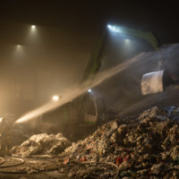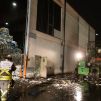Immer wieder wurden Glutnester in den Müllhaufen gesichtet, was noch großzügigeres Ausräumen der Recyclinghalle zur Folge hatte. Bis ca. 06:30 Uhr wurde das Recycling aus der Halle gebracht und abgelöscht.