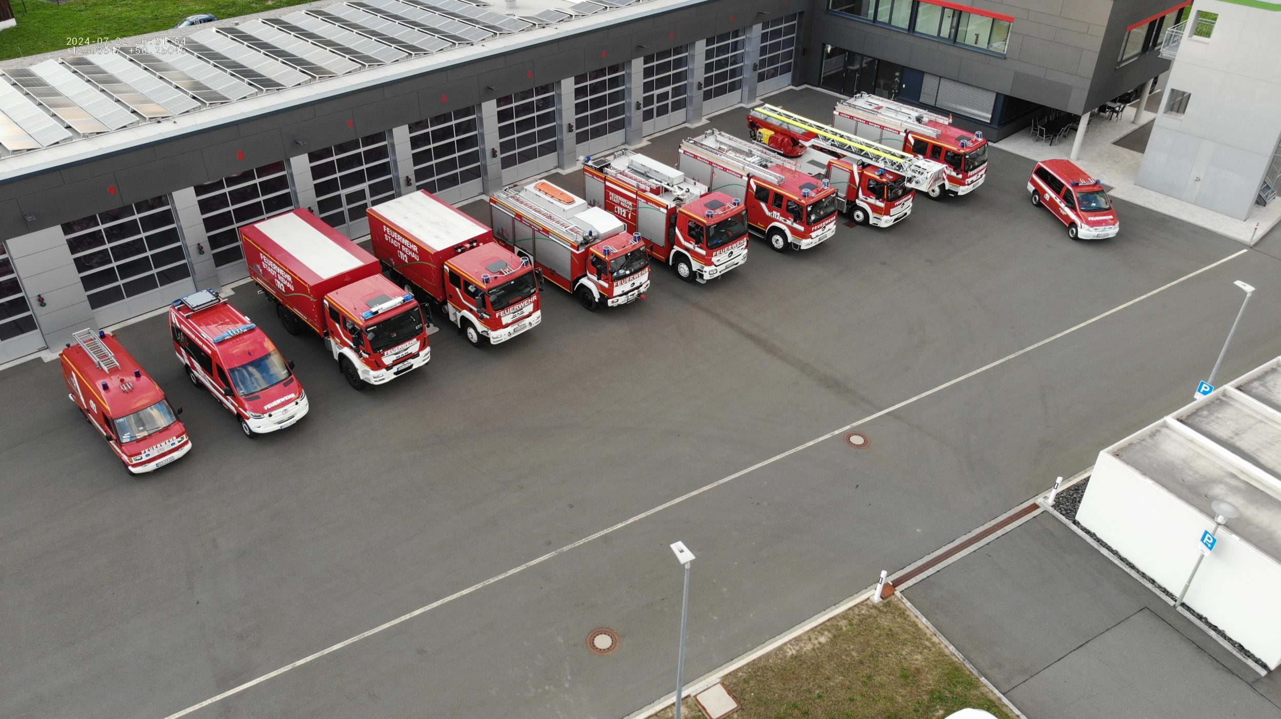 Fahrzeuge Einsatzleitwagen ELW Mannschaftstransportwagen MTW Kleinalarmfahrzeug KLAF Drehleiter DLK 23-12 Tanklöschfahrzeug TLF 24/50-CAFS Hilfeleistungslöschfahrzeug HLF 16/20 Löschgruppenfahrzeug LF 20/16-P750-CAFS Schlauchwagen SW 2000 Rüstwagen RW 2 Dekontaminationsfahrzeug Dekon-P Verkehrssicherungsanhänger VSA Netzersatzanlage NEA Stapler